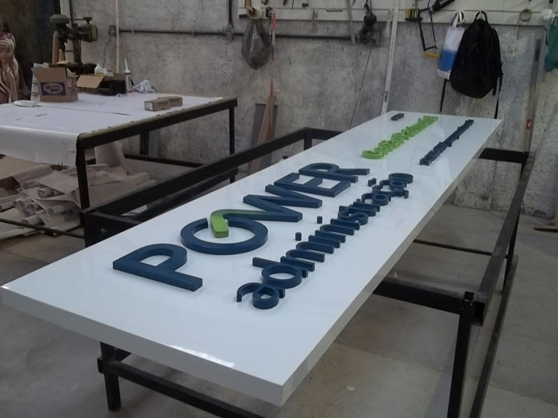 Letreiro personalizado em 3D de fácil instalação. Destaque sua marca com belos modelos desenvolvidos sob medida.